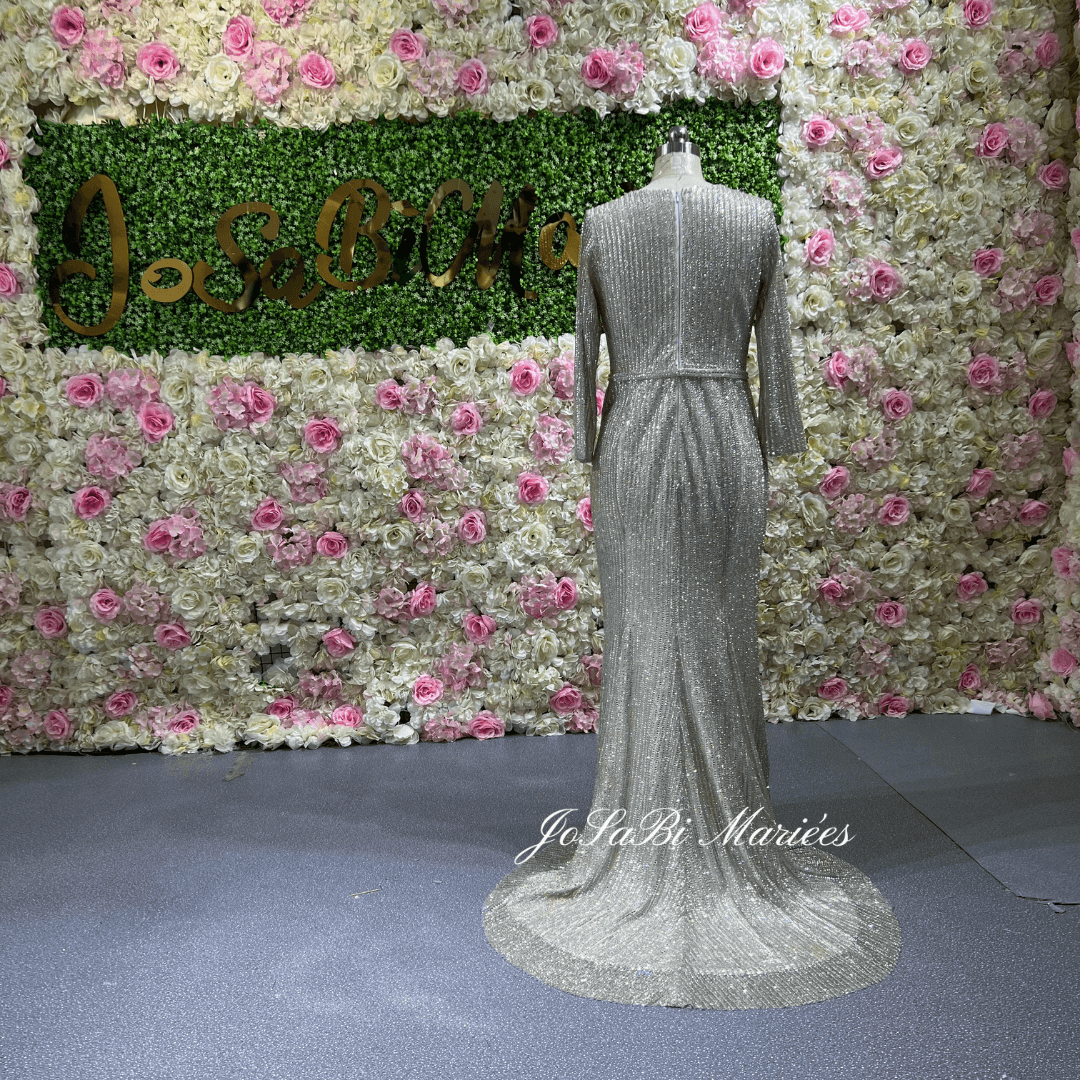 Fortunately, JoSaBi Alex contacted us long before her big day. Therefore, we had a margin to create her fabric, and we went all in. That meant creating some samples, choosing the perfect combination of custom beadwork, making actual fabric out of it, and then creating the dress. We pulled all the stops! That process alone took a few months, but the result was spectacular!